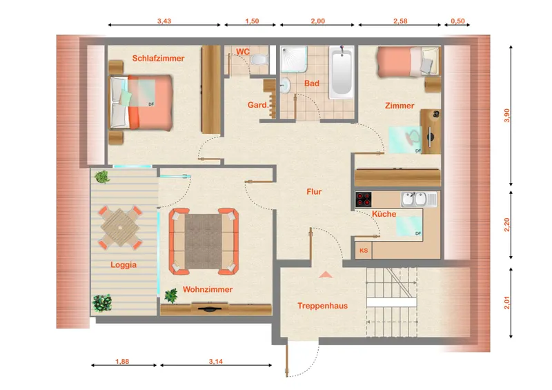 71106 MagstadtSchöne 3 Zimmer-Wohnung in Traumlage direkt am Feldrand